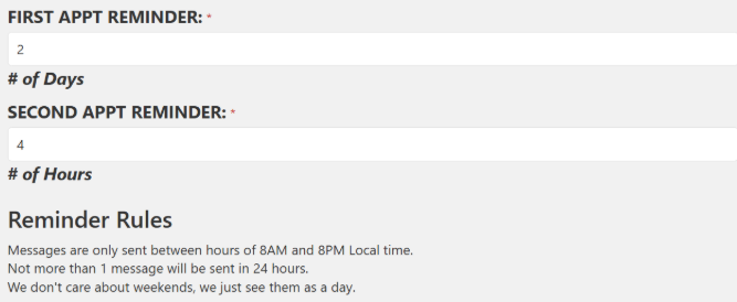 3. Confirmation request 3 is asked "x" hours before the appointment.