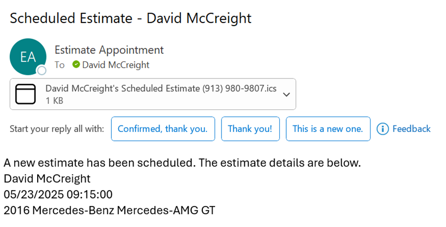 CR Auto Scheduler - Estimates - Appointment Confirmation Info