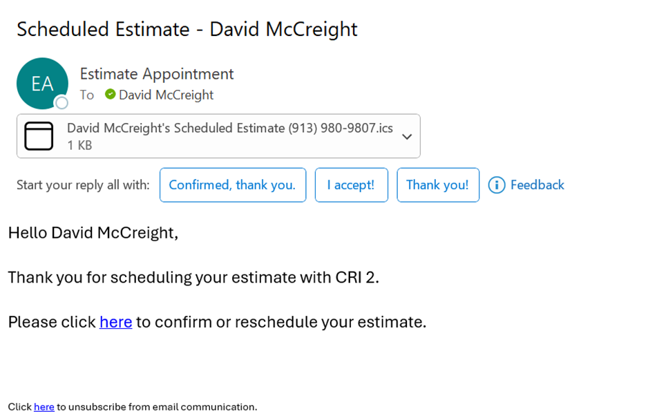 CR Auto Scheduler - Estimates - Customer & Estimator Email Confirmation